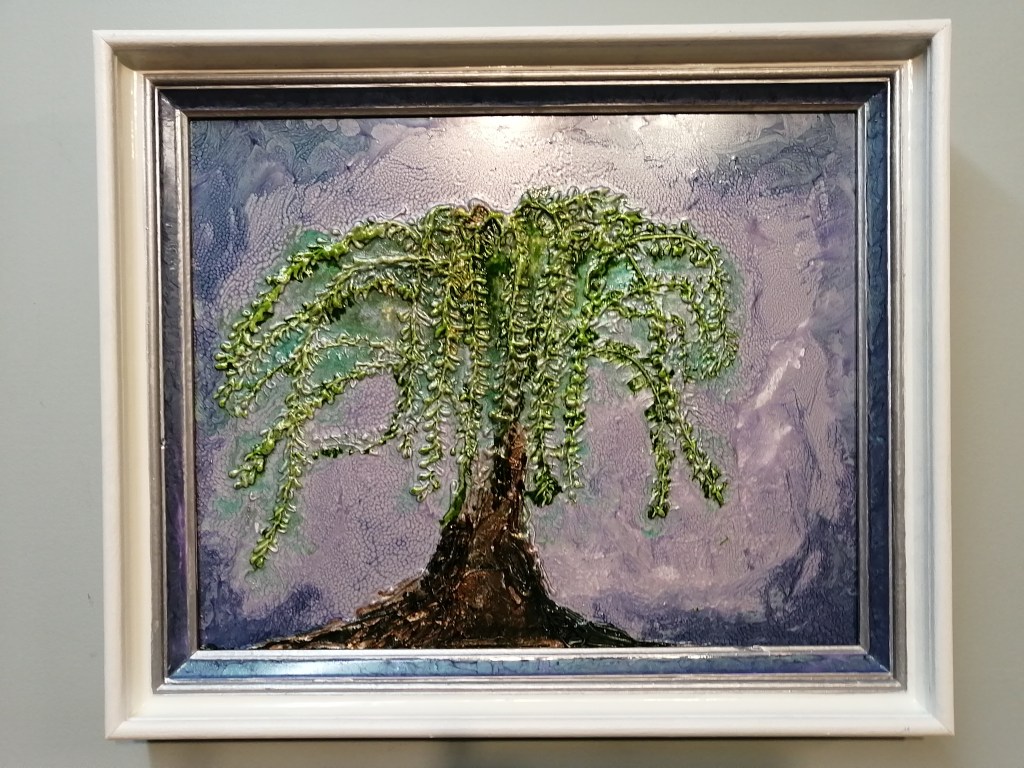 Je ne fais que des arbres. Mais, un jour, une de mes filles m’a avoué timidement qu’elle voulait une œuvre mais qu’elle n’aimait pas vraiment les arbres. Alors, je me suis lancée dans les fleurs.