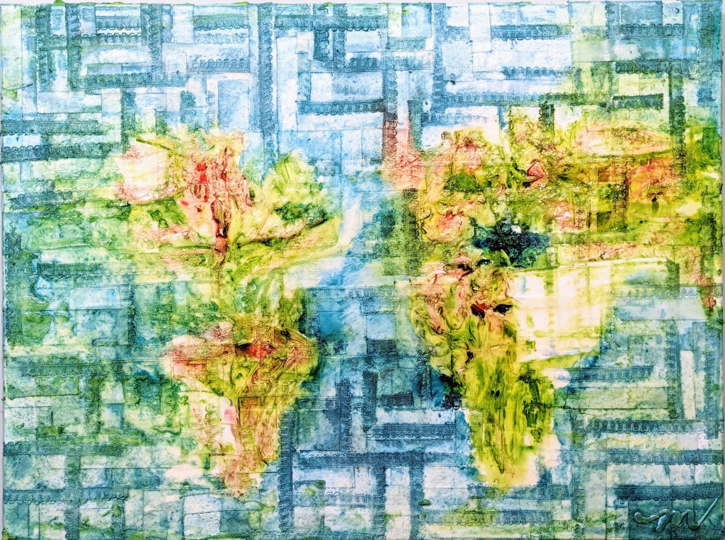 J’ai fait cette toile en l’honneur de mes filles arc-en-ciel. Elles aiment avec la douceur du magnolia, elles s’engagent avec la force des racines, elles sont femmes, elles sont natures.