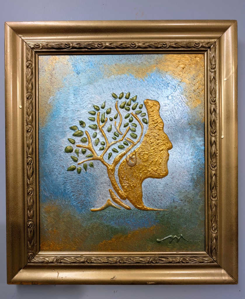 Il y a des traversées invisibles, des combats silencieux où le corps et l’esprit apprennent, jour après jour, à se relever ensemble. Dans cette œuvre, le visage et l’arbre ne font qu’un, comme si la guérison prenait racine à l’intérieur pour doucement se redéployer vers l’extérieur. Les branches s’ouvrent, les feuilles réapparaissent… un souffle revient, fragile mais vivant, porteur d’espoir et de renouveau. Merci à l’acquéreur pour la confiance et la sensibilité envers cette œuvre profondément humaine.